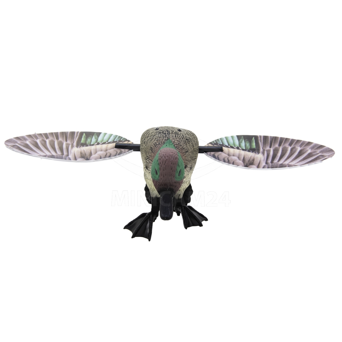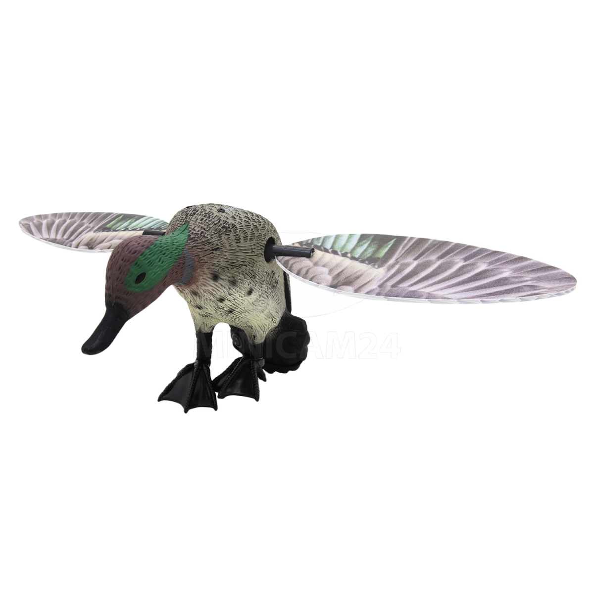 Механический махокрыл - приманка Чирок с пультом в виде настоящей утки поможет во время охоты. За счет имитации вида селезня махокрыл для охоты на уток приманит остальных птиц. Приманка с дистанционным пультом управления имеет складную структуру, поэтому риск сломать крылья во время транспортировки сведен к минимуму. Управляется махокрыл с пульта, на котором всего 2 кнопки управления для включения и выключения устройства. Радиус действия достигает 200 метров на открытой местности. Приманку в виде чирка можно регулировать по высоте за счет складного штатива в комплекте. Махокрыл нетбоится плохой погоды, краска не слезает даже после сильного дождя.